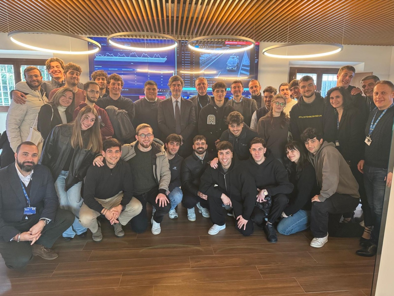 Nel corso della giornata, i ragazzi sono stati accompagnati all’interno della control room, dove vengono raccolte e analizzate informazioni in tempo reale su traffico, meteo, infrastrutture e condizioni dell’asfalto, elementi fondamentali per il supporto alle attività operative e per lo sviluppo dei servizi di mobilità intelligente. La visita ha incluso anche un approfondimento sulle applicazioni dedicate alla comunicazione veicolo-infrastruttura e sulle potenzialità dei sistemi di manutenzione predittiva.