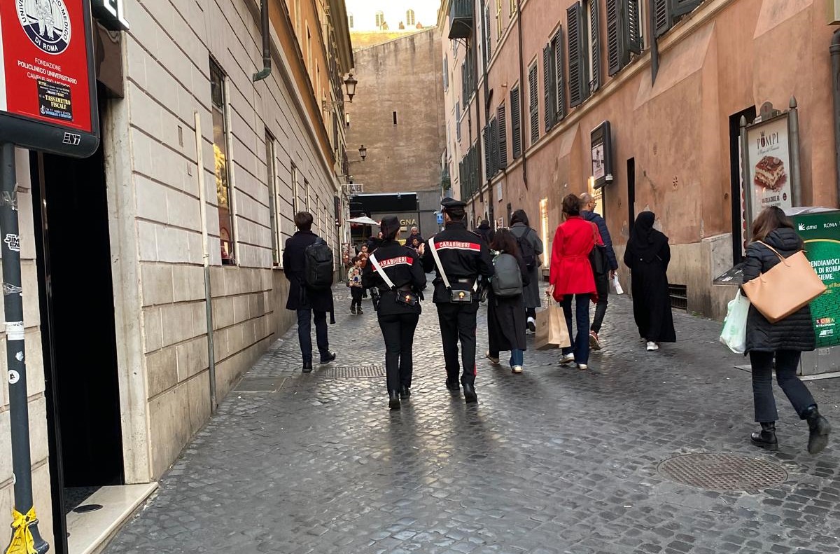 Sempre i Carabinieri del Comando di Roma Piazza Venezia hanno arrestato anche due cittadini romeni, una donna di 29 anni e un uomo di 18, colti in flagrante dopo aver rubato il portafogli dalla borsa di un’anziana turista americana.