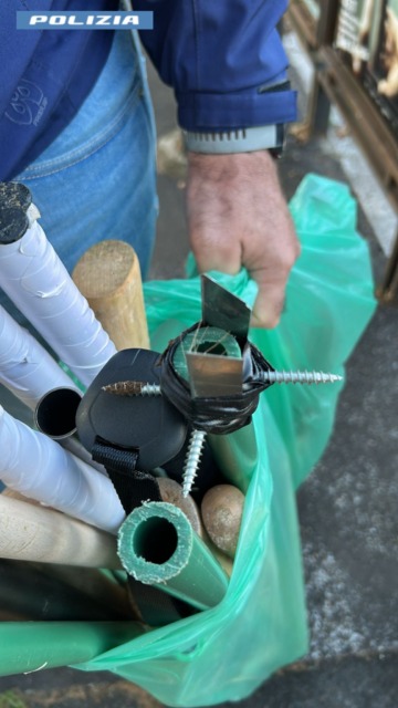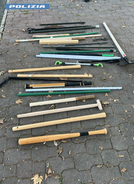 Nella zona di piazza Mancini, sono stati rinvenuti e sequestrati numerosi oggetti atti ad offendere tra mazze in legno ed aste in plastica munite di viti e di lame.