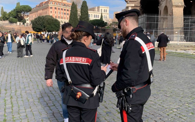 Denunciate due donne nomadi di 25 anni fermate dopo il furto di una borsa a una turista coreana in piazza del Colosseo. Sanzionati tre cittadini romeni sorpresi ai Fori Imperiali mentre allestivano il gioco delle tre campanelle: per loro multa da 100 euro e ordine di allontanamento per 48 ore. Multa da 400 euro e analogo provvedimento anche per una guida turistica abusiva sorpresa all’interno del Colosseo.