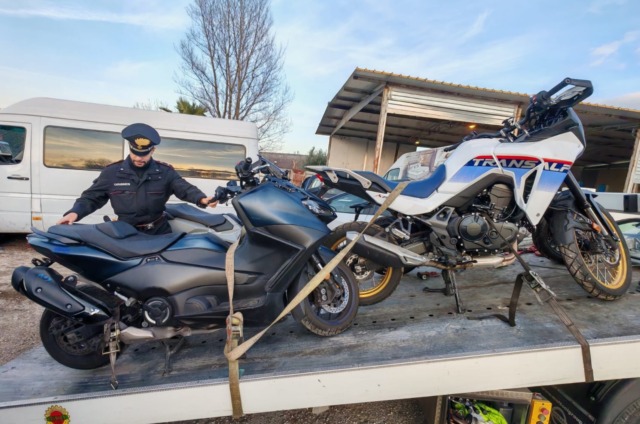 L’input è arrivato grazie alla segnalazione giunta alla centrale operativa dei Carabinieri, tramite il numero di emergenza 112, da parte un cittadino romano che, grazie al localizzatore Gps installato sul proprio scooter, rubato lo scorso 18 gennaio, ha guidato i militari al capannone, situato in un’area commerciale, di proprietà di un cittadino romeno. All’interno dell’area, i carabinieri hanno sorpreso i due operai che gestivano l’attività, pur essendo privi di qualsiasi autorizzazione professionale. Oltre al T-Max segnalato, i carabinieri hanno rinvenuto altri 12 motoveicoli, tra cui diversi Honda SH, Yamaha Tracer e X-Max, tutti risultati provento di furto commessi tra dicembre 2025 e gennaio 2026 nelle zone di Roma (Prenestina, San Giovanni, Monteverde, Trevi). I mezzi, già privati delle targhe e in alcuni casi parzialmente smembrati, erano pronti per essere immessi nel mercato nero dei ricambi o riciclati.