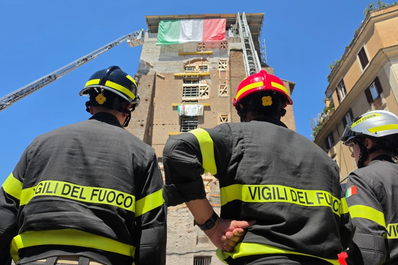 “Un saluto riconoscente ai Vigili del fuoco e alle forze dell’ordine nel ricevere la simbolica e materiale responsabilità della Torre dei Conti, che trasmettiamo alla Sovrintendenza capitolina – ha aggiunto il primo cittadino -. Vogliamo esprimere la nostra gratitudine, riconoscenza e ammirazione per il lavoro straordinario che i Vigili del fuoco hanno svolto con una perizia unica, con pochi uguali al mondo, che ha consentito il salvataggio di questo monumento sulla base di una collaborazione da subito istituita tra Governo, Prefettura, Roma capitale e Vigili del fuoco. Lavoro che ha permesso, in parallelo con le attività investigative della magistratura, che proseguono, di mettere subito in sicurezza e salvare la Torre che, altrimenti, non ci sarebbe più”.