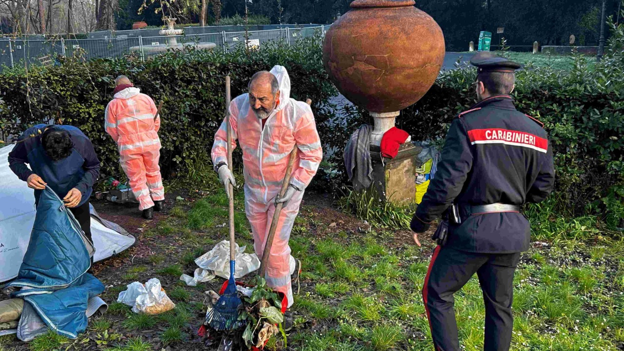Durante l’intervento sono stati inoltre rimossi circa cinque metri cubi di rifiuti accumulati nei giacigli di fortuna. In un’area boschiva nei pressi del Pincio, vicino a un deposito dismesso del Servizio Giardini di Roma Capitale, è stato infine scoperto un insediamento abusivo con diverse baracche, per le quali sono state avviate le operazioni di rimozione.