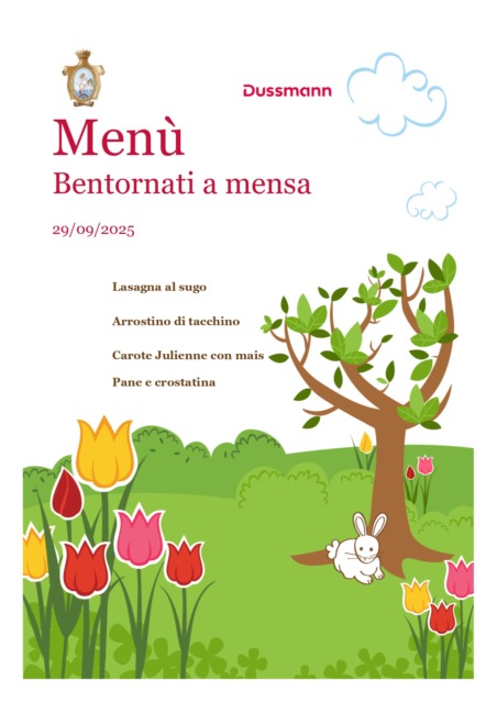 Per il primo giorno è previsto un menu di benvenuto con lasagna, arrostino, verdure, pane e crostatina